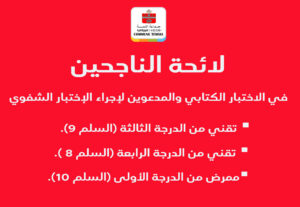 نتائج الاختبارات الكتابية لمبارة التوظيف المنظمة بتاريخ الأحد 19 يوليوز 2025 :