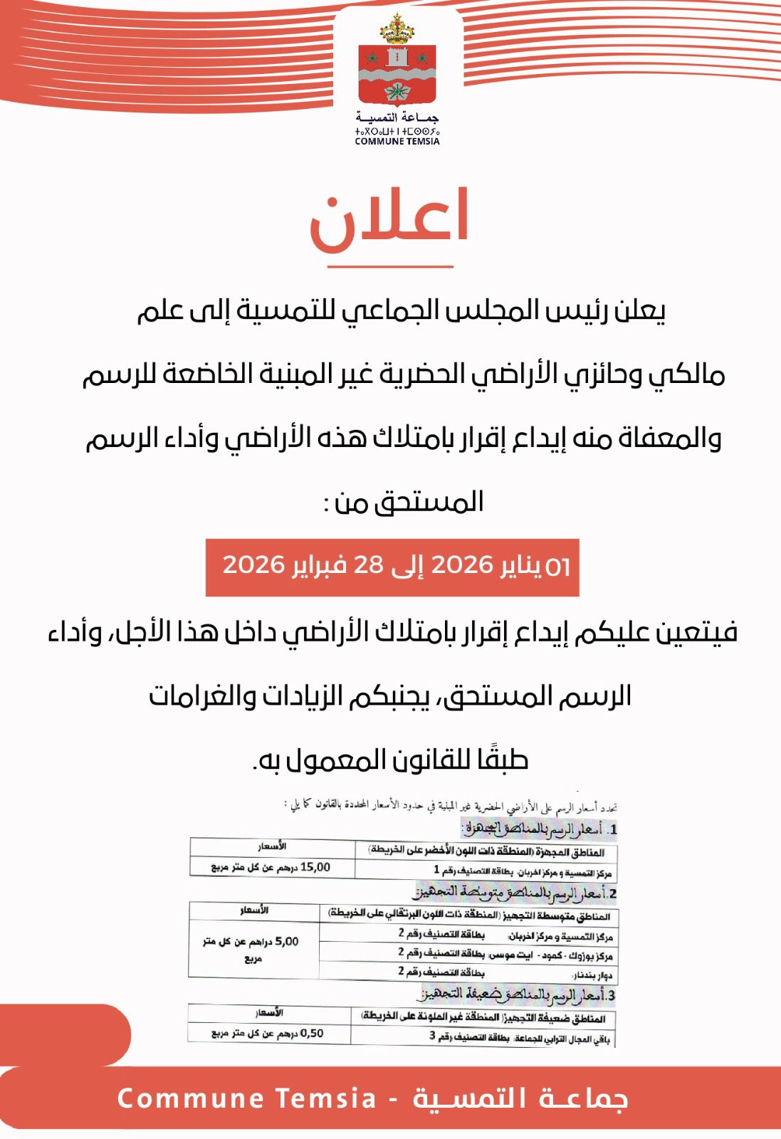 إعلان بخصوص الرسم على الأراضي الحضرية غير المبنية